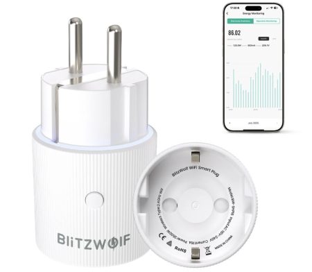 BlitzWolf BW SHP16 16A 3500W WiFi-s okos konnektor távoli vezérléssel, időzítéssel és fogyasztásméréssel most csak 11.59$ a BG26WIOSNA29 kuponnal (~3700 Ft).