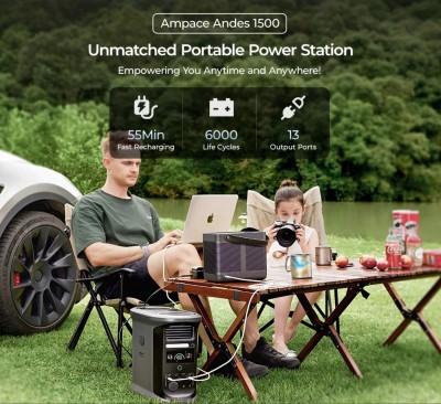 Ampace Andes 1500 hordozható energiaállomás most 190 400 Ft az NNNACA15HU kuponnal. 1462 wattórás LiFePO4 akkumulátor, 6000+ töltési ciklus, 55 perces gyorstöltés, 2400 wattos kimenet.