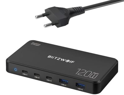 Blitzwolf BW-i100 120W-os, 5 portos, univerzális GaN töltő most csak 18.79$ a BG1766a2 kuponnal (~6600 Ft). 2 db USB-A és 3 db USB-C porttal, sokféle gyorstöltési szabványt támogat (PD3.0, QC3.0, AFC, FCP, SCP, PPS, PE, stb.). Használható szinte bármilyen márkájú telefonhoz (Samsung, Xiaomi, Huawei, Apple, OnePlus), tabletekhez, notebookokhoz (Macbook is). Kérhető egy USB-C kábellel is csomagban kis felárért.