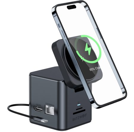 BlitzWolf BW TH17 USB-C dokkoló és töltő állomás rengeteg porttal most csak 18.99$ a BGae7983 kuponnal (~6700 Ft). 15W-os mágneses vezeték nélküli töltés, USB 3.0, 3 db 4K kijelző kimenet, RJ45 port, kártyaolvasó, 100W-os PD töltés.