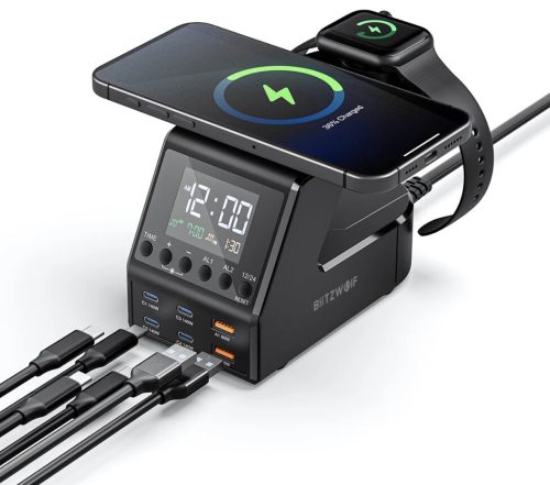 Blitzwolf BW FW10 240W-os több portos töltő, vezeték nélküli töltő, óra és ébresztő egyben most csak 45.99$ a BGEUFW10 kuponnal (~16100 Ft).