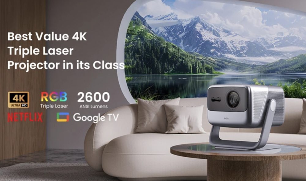 JMGO N1S Infinitys RGB DLP tripla lézeres 4K UHD projektor beépített gimballal, 2600 ANSI Lumens fényerővel most csak 1429$ a BGf1f454 kuponnal európai (CZ) raktárról, gyors szállítás (~518800 Ft). Beépített Google TV rendszer, immáron Netflix támogatással, igazi csúcsmodell.