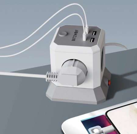 BlitzWolf BW EC1 elosztó kocka konnektor csatlakozókkal és töltő portokkal most csak 15.99$ a BGe2dfe7 kuponnal (~5600 Ft). 4 db AC konnektor kimenet, 2 db normál USB töltő és 2 db Type-C töltő.