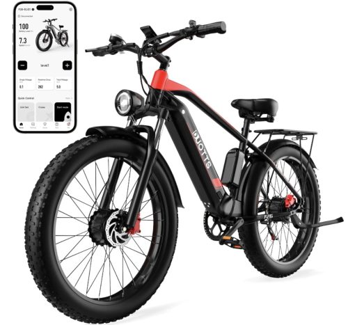 DUOTTS S26 duál motoros, 2x750W-os elektromos kerékpár extra széles kerekekkel most 1215.99$ a BG531d2a kuponnal európai (CZ) raktárról, gyors szállítás (~424400 Ft). 48V/20Ah-s extra nagy Samsung akku, 26×4 colos széles kerekek, akár 200 kg-os teherbírás.