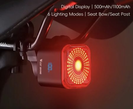 WEST BIKING bicajos/rolleres féklámpa okos érzékeléssel, USB-C töltéssel most csak 9.99$ a BG04TYF18 kuponnal (~3600 Ft).