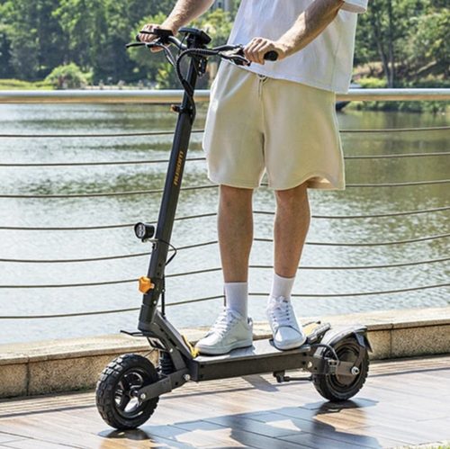 KuKirin T3 800W-os elektromos roller most csak 198.000 Ft a KukirinT3 kuponnal. 48V/15,6Ah-s akku, akár 58 km hatótáv és 45 km/óra sebesség, 10 colos kerekek, elöl-hátul tárcsafék.