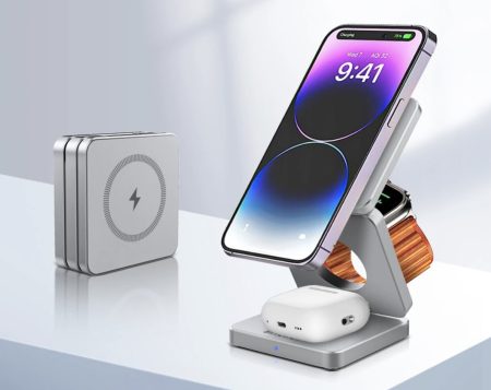 BlitzWolf IW30 15W-os, összehajtható, mágneses vezeték nélküli töltő most csak 20.99$ a BG584961 kuponnal (~6700 Ft). Telefon, okosóra és fülhallgató is tölthető róla egyszerre! iPhone-okhoz, Apple Watch-okhoz és AirPods fülesekhez is jó, de nem csak Apple cuccokhoz.