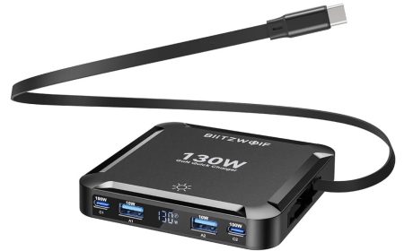 Blitzwolf BW-S32 asztali GaN gyorstöltő, 130W-os, 5 porttal + beépített kábellel most csak 27.19$ a BG1dad99 kuponnal európai (CZ) raktárról, gyors szállítás (~9300 Ft). Telefonok, tabletek, laptopok és más kütyük töltésére, mindenféle márkához jó (Samsung, Xiaomi, iPhone-ok, Macbookok, stb.).