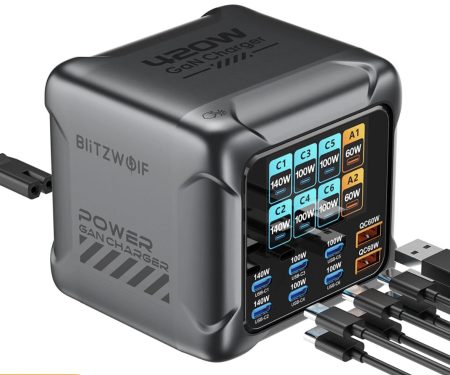 Blitzwolf BW-S33 asztali GaN gyorstöltő, 420W-os, 8 porttal most csak 46.49$ a BG4e0586 kuponnal (~15900 Ft). Sokféle szabványt támogat, tölthető vele többek között Samsung, Huawei, Xiaomi telefon vagy iPhone-ok is, továbbá laptopok (Macbook is), tabletek, és mindenféle más kütyük!