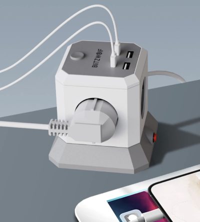 BlitzWolf BW EC1 elosztó kocka konnektor csatlakozókkal és töltő portokkal most csak 15.99$ a BG64d776 kuponnal európai (CZ) raktárról, gyors szállítás (~5400 Ft). 4 db AC konnektor kimenet, 2 db normál USB töltő és 2 db Type-C töltő.
