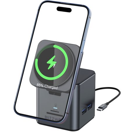 BlitzWolf BW TH17 USB-C dokkoló és töltő állomás sok porttal most csak 17.99$ a BGcf2821 kuponnal európai (CZ) raktárról, gyors szállítás (~6100 Ft). 15W-os mágneses vezeték nélküli töltés, USB 3.0, 3 db 4K kijelző kimenet, RJ45 port, kártyaolvasó, 100W-os PD töltés.