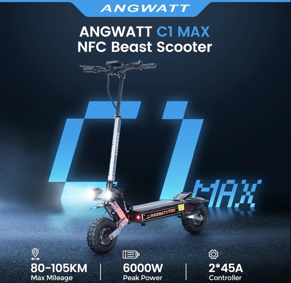 Sokan már megkapták, de jelenleg készlethiány miatt csak elővételben, június végi szállítással kapható az Angwatt C1 Max. Ez nem hétköznapi roller, hanem egy brutális teljesítményű gép, amely 6000 wattos (2×3000 W) duál motorjával akár 85 km/h-s végsebességre is képes. A 60V-os, 30 Ah-s akkumulátor hatótávolsága ideális körülmények között elérheti a 105 km-t, így hosszabb túrákhoz is kiváló választás. A masszív felépítés, a 11 colos terepgumik és a 200 kg-os teherbírás garantálja, hogy ne csak városban, hanem nehezebb terepen is megállja a helyét. Hidraulikus tárcsafékek, első-hátsó lengéscsillapítók és erős világítás teszik teljessé ezt a lenyűgöző közlekedési eszközt. Az Angwatt C1 Max azoknak szól, akik nem érik be az átlagossal.
