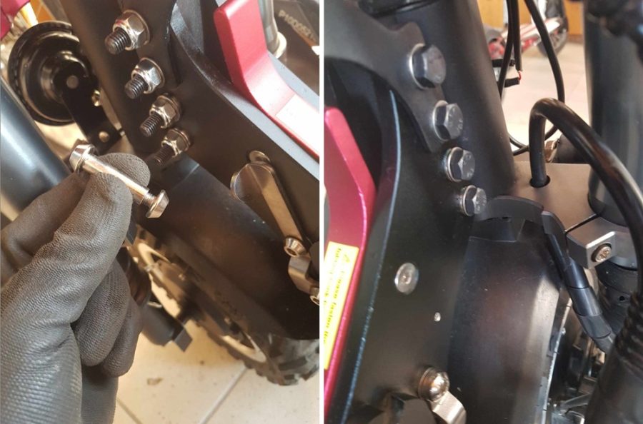 - Az Angwatt ezeket a csavarkákat azért megijesztette menetrögzítővel. Ha első körben nem akarjuk a csavarokat cserélni, akkor azért kínáljuk meg gazdagon a csavarokat menetrögzítővel. Az összecsukó szerkezet zárjának (piros kallantyú) önzárós anyáját sem árt meghúzni, és szilikonos zsírral ellátni.