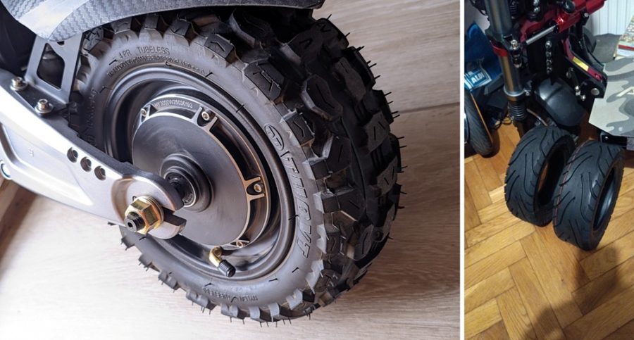 Ezek a gumik kiválóak terepre, földesútra, hiszen off-road gumik, de egy országúti verzió, mint a kép jobb oldalán látható, sokkal jobb lett volna.