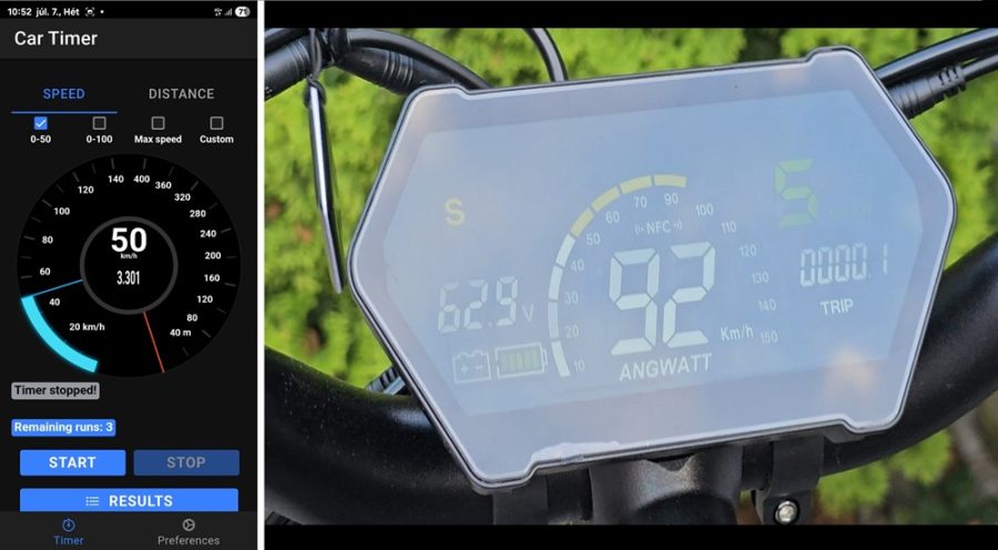 A gyorsulás az, ami igazán másvilági élményt nyújt. A mérésünk szerint a harmadik generációs Angwatt 3,301 másodperc alatt gyorsul fel álló helyzetből 50 km/h-ra.