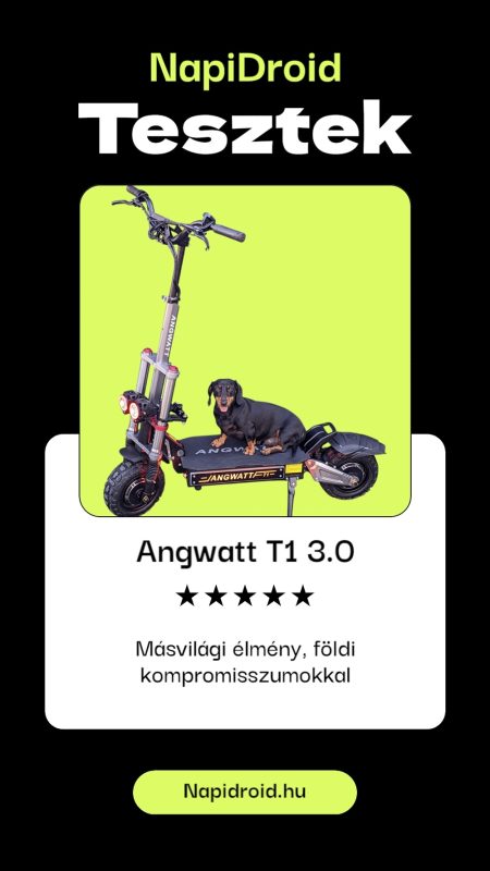 Közben a gyártó is tanult, és kiadta a T1 2.0-ás verziót, amely már számos, általunk is kifogásolt hibát orvosolt. Most pedig itt van előttünk a T1 3.0, az Angwatt evolúció csúcsa. A nagy kérdés, ami az egész tesztet végigkíséri – vajon a gyártó ezúttal minden leckét megtanult? Sikerült egy olyan rollert alkotniuk, ami már a dobozból kivéve is a „Másvilágba repít” élményt nyújtja, a „Halj meg máskor” kockázata nélkül? Vagy a szörnyeteg megszelídítése továbbra is a mi feladatunk marad? Induljunk, és derítsük ki!