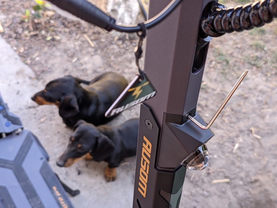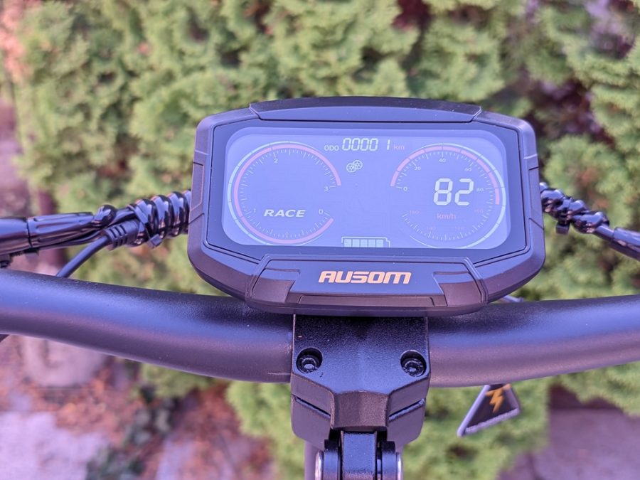 A kormányoszlopba integrált és a lábtartó oldalain elhelyezett kék LED csík, illetve Ausom felirat jól néz ki, igény esetén a plusz gomb dupla megnyomásával kikapcsolható. Az irányjelzőt a mögöttünk lévők észlelhetik, a közlekedés többi résztvevője azonban nem, szóval itt elcsúszik a mutatvány.