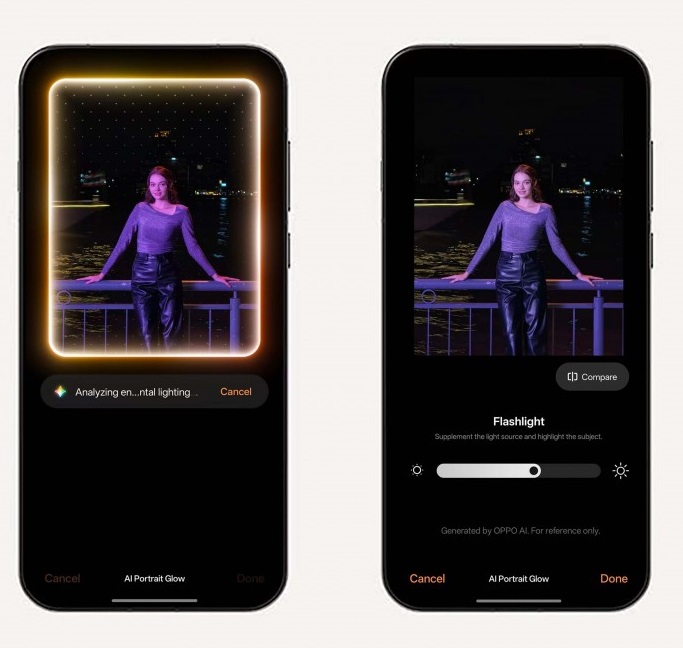 Az Oppo mesterséges intelligencia csomagja is frissül. A meglévő AI Radír, AI Élesítés és AI Tükröződés Eltávolító mellé érkezik az új AI Portré Fény opció is, amelynek célja a gyenge fényviszonyok mellett készült képek javítása.