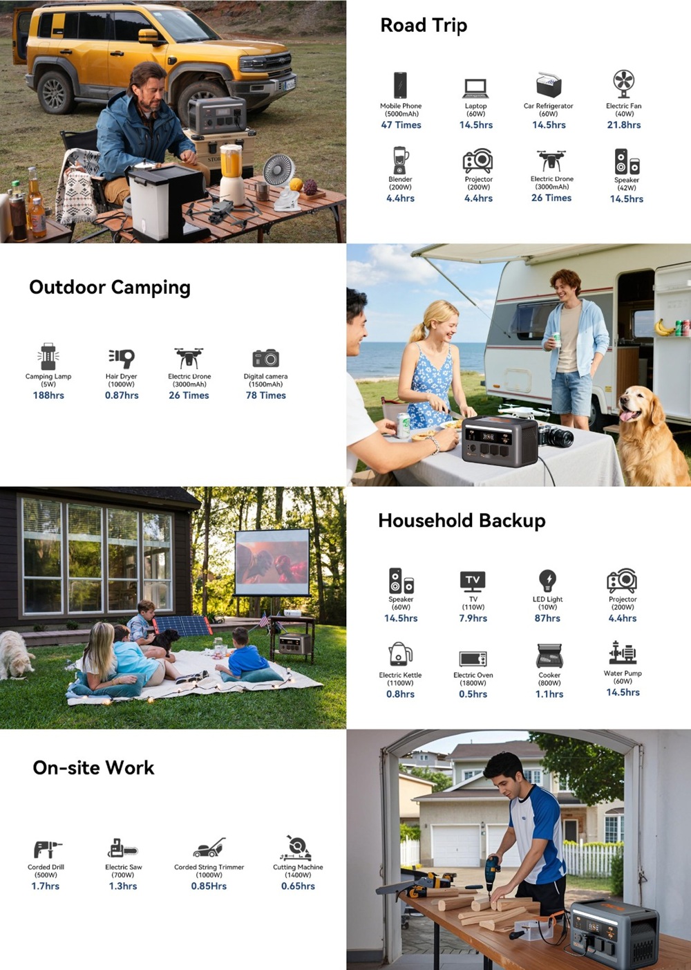 Az 1800 W-os folyamatos, illetve 3600 W-os csúcsteljesítménynek köszönhetően számos háztartási eszközt, szerszámgépet vagy konyhai berendezést is működtethetsz róla, például hajszárítót, kávéfőzőt, mikrohullámú sütőt vagy akár egy hősugárzót.