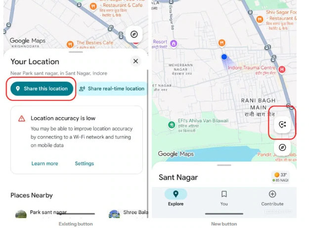 A helymegosztás jelenleg úgy néz ki, hogy először az iránytű ikonra kell böknünk a térkép középre igazításához, majd az eszközünket jelző kék pontra, és csak ezután lehet kiválasztani a felugró menüből a megosztás lehetőségét. Az Android Authority csapata azonban mélyre ásott a Google Térkép 26.12.03.884026066-os verziójának kódjában, és találtak egy új, kör alakú ikont közvetlenül az iránytű felett, amely a helyjelző tű és a jól megszokott megosztás szimbólum egyfajta ötvözete. Ennek a gombnak a megnyomásával azonnal előjön a helymegosztás menüje, minden köztes lépést átugorva.