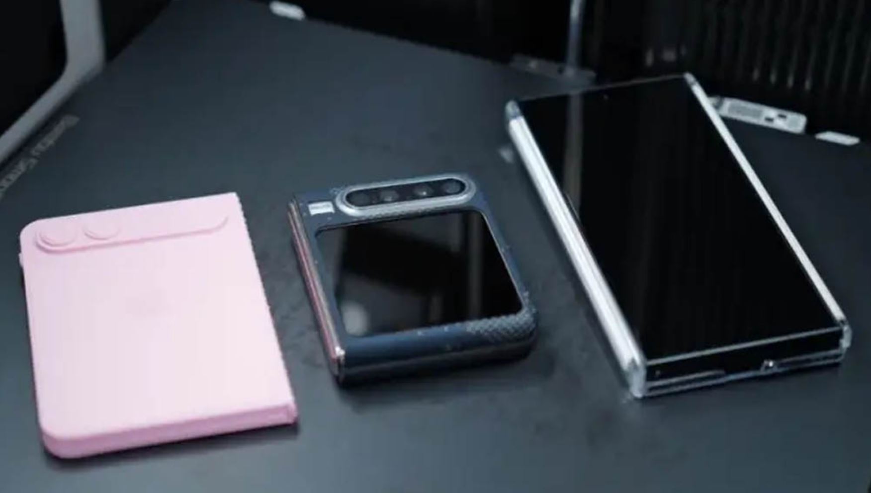 Ez a kialakítás azt eredményezi, hogy a hajlítható panel képaránya sokkal inkább téglalap alakú, nem pedig négyzetes, mint a többi, jelenleg is megvásárolható hajlítható mobilé. A Samsung készülékeivel való összehasonlítás jól szemlélteti a különbségeket. A háromfelé hajlítható, kinyitva 10 hüvelykes táblagéppé alakuló Galaxy Z TriFold egy teljesen más kategóriát képvisel, de talán nem hasztalan az összehasonlítás, amely a lenti képen látható.