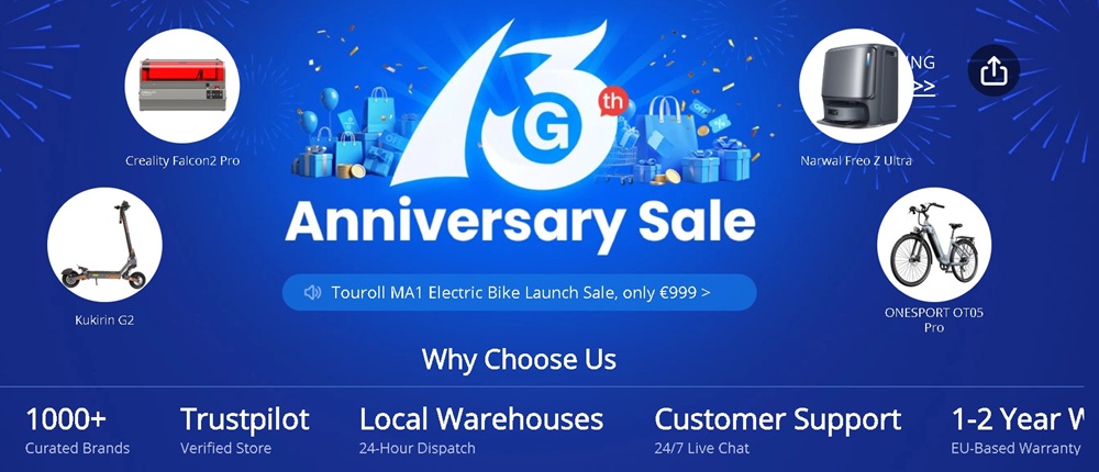 A Geekbuying idén ünnepli 13. születésnapját, ennek alkalmából június 10. és 30. között nagyszabású promócióval kedveskedik a vásárlóknak. Az ünnepi időszak során hatalmas kedvezmények, exkluzív kuponok, nyereményjátékok és meglepetések várják az érdeklődőket.
