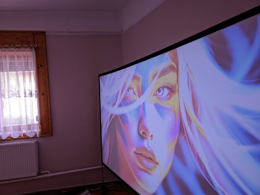 Az extra 300 lumen a félig elsötétített szobában is érzékelhető különbséget jelent az elődhöz képest. A HDR-tartalmakat a projektor automatikusan felismeri, és a képkezelés helyesen reagál rá. Az LCD-technológiára jellemző enyhe peremlágyulás itt is megvan: a kép közepe a legélesebb, a sarkok felé némi fókuszcsökkenés tapasztalható. Ez a kategóriában elvárható kompromisszum.