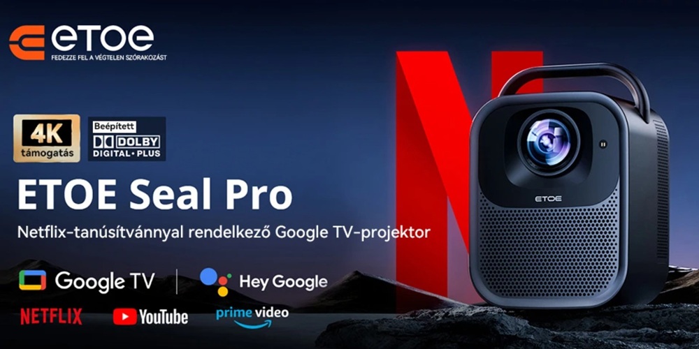 Másfél éve már vendégeskedett nálunk az ETOE Seal Pro, most pedig befutott az „Upgraded Edition”, azaz a frissített kiadás. A 2026-os változat pontosan ott javítja ki az elődmodell csorbáit, ahol a leginkább fájt: megnövelt fényáramot, tartalomközpontú Google TV-felületet és stabilabb Bluetooth-kapcsolatot kínál. Mindezt úgy éri el, hogy a vételára közben a bűvös százezer forintos lélektani határ alá csökkent, így az egyik legjobb ár-érték arányú választássá vált a hazai piacon. Megnéztük, hogy a papíron ígért 1300 ANSI lumen és a Google TV integrációja hogyan változtatja meg a mindennapi moziélményt, és vajon a 93 000 forintos ár mellett is megállja-e a helyét a komolyabb versenytársakkal szemben.
