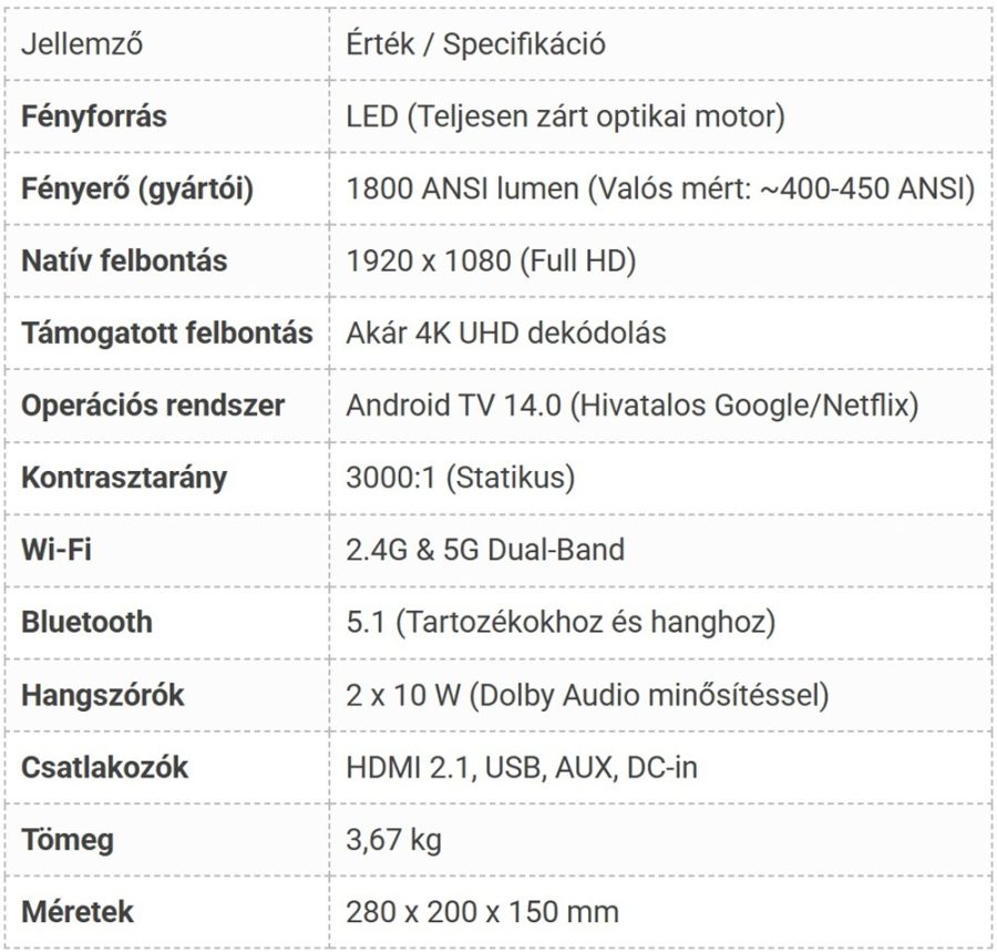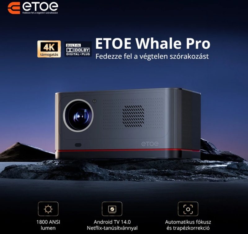 Az ETOE Whale Pro az új Android 14-es frissítéssel egyértelműen szintet lépett szoftveres oldalon. Bár az 1800 ANSI lumenes fényerőt érdemes fenntartásokkal kezelni, sötétített szobában remek moziélményt nyújt, a hivatalos Netflix-támogatás pedig kényelmessé teszi a használatát. Nem versenyezhet a háromszor-négyszer drágább lézerprojektorokkal (mint a Vidda C2 Pro), és az elhelyezésére is oda kell figyelni az optikai zoom hiánya miatt, de a saját árkategóriájában egy nagyon korrekt versenyző.