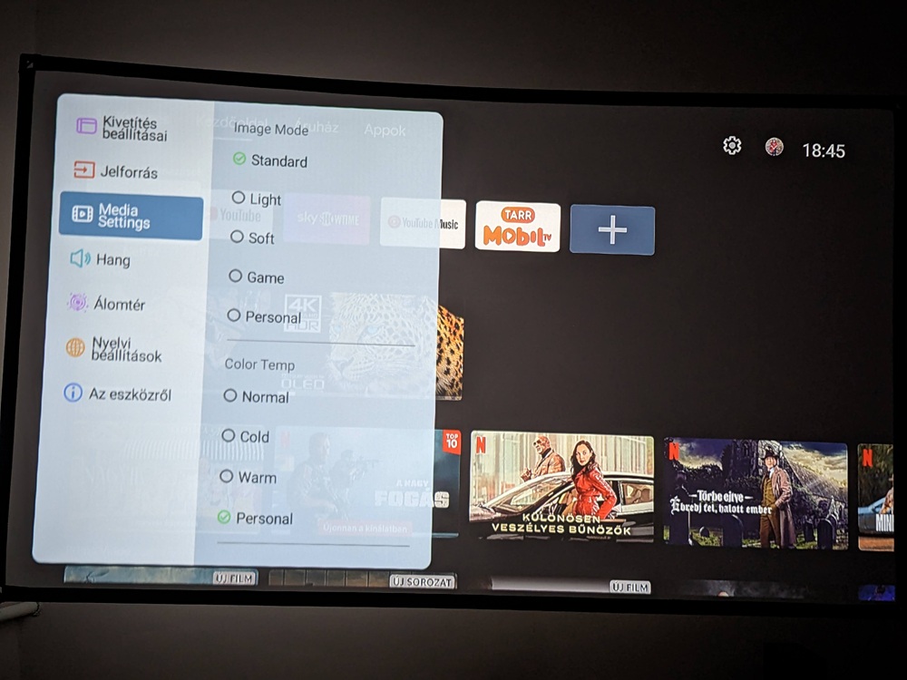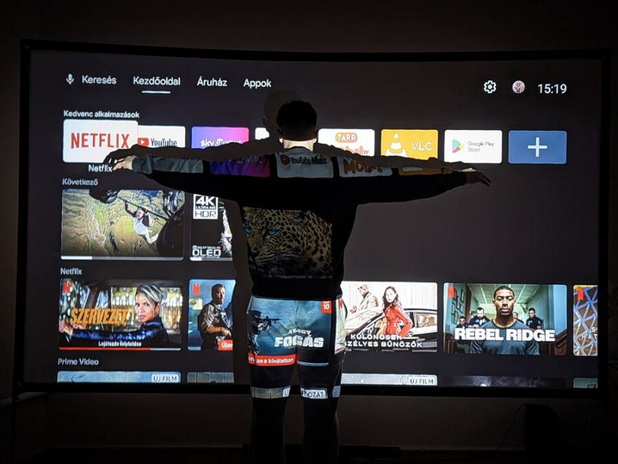 A tesztidőszak alatt rengeteget használtuk a projektort hagyományos TV kiváltására is, és ezen a téren vegyes, de alapvetően pozitív a kép. A hazai szolgáltatók appjai közül a TARR MobilTV például kifogástalanul, gyorsan és szépen futott a rendszeren.