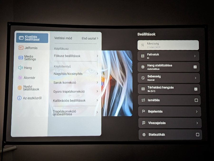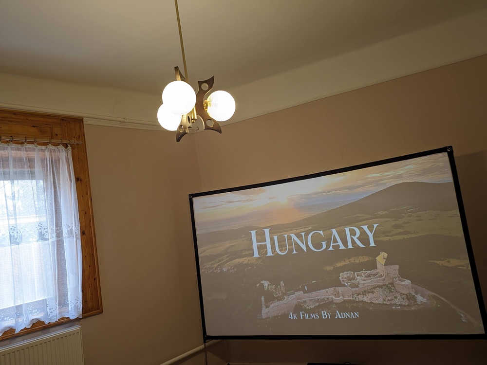 A teszthez ismét a 120 hüvelykes BlitzWolf vásznat használtuk. A projektor ettől a vászontól pontosan 4,3 méteres távolságra volt elhelyezve. Itt mutatkozott meg a különbség a Vidda C2 Pro-hoz képest: ott az optikai zoom rugalmassága lehetővé tette, hogy ekkora távolságból is pontosan a 120 hüvelykes keretbe illessze a képet. Az ETOE Whale Pro-nál viszont csak digitális zoom van (50–100% között), és a 120 hüvelykes mérethez a 3,26 méter lenne az ideális távolság. A képminőség ideális beállításokkal lentebb látható, ez így magáért beszél.