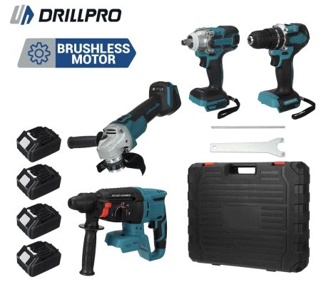 Drillpro akkus szerszám szett 4 db géppel + 4 db akkuval most csak 138.99$ a BG6a2f7c kuponnal európai (CZ) raktárról, gyors szállítás (~46100 Ft).