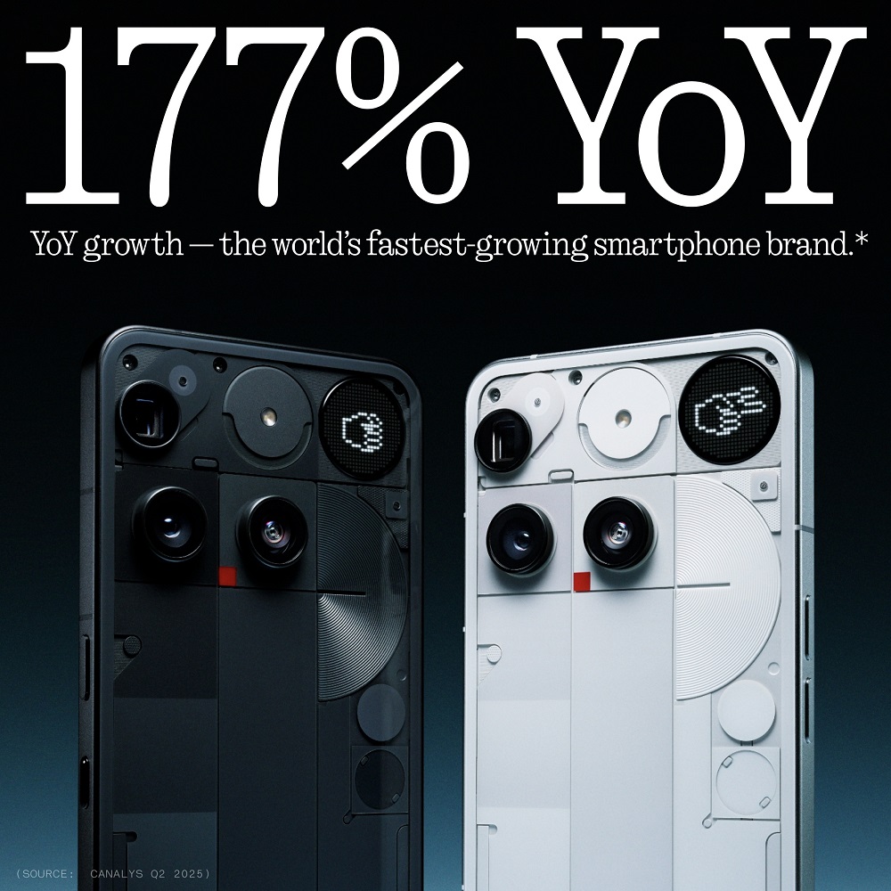 A Canalys piackutató cég legfrissebb jelentése szerint 2025 második negyedévében a Nothing volt a bolygó leggyorsabban növekvő okostelefon-márkája. A gyártó 177%-os éves szintű növekedést produkált, és a történetében először lépte át az egymillió leszállított készüléket egyetlen negyedév leforgása alatt. A kiemelkedő eredményt elsősorban annak köszönhetik, hogy nagy figyelmet fordítottak az indiai piacra, ami a világ egyik legnagyobb és legfontosabb értékesítési régiója.