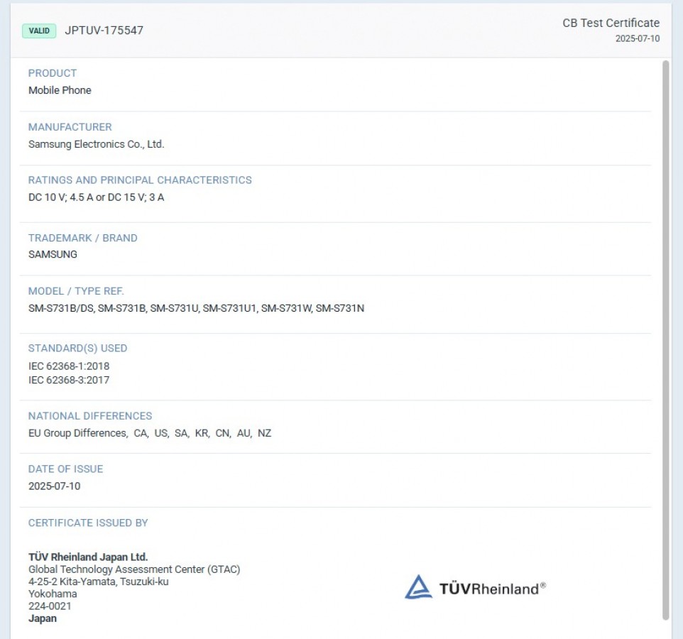 Egy a közelmúltban közzétett TÜV Rheinland tanúsítvány megerősítette a Samsung Galaxy S25 FE egyik legfontosabb újítását az elődökhöz képest. A mellékelt dokumentáció alapján az okostelefon támogatni fogja a 45 wattos töltést, ami jelentős előrelépés az előd, vagyis a Galaxy S24 FE 25 wattos maximumához képest. Arról persze ne feledkezzetek meg, attól, hogy a támogatás adott lesz, az adaptert ugyanúgy nektek kell majd beszerezni.