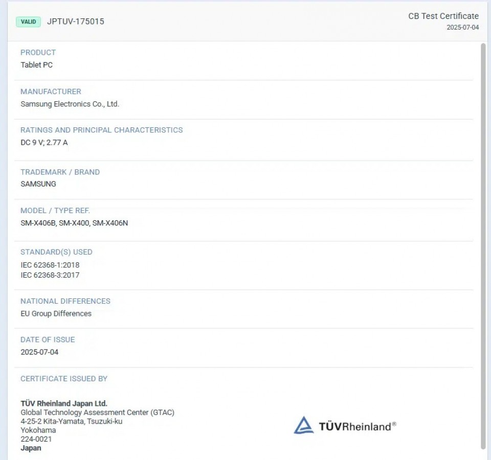 A tanúsítvány egy másik, szintén a közeljövőben érkező készülékről, a Galaxy Tab S10 Lite-ról is elárulta a töltési sebesség maximumát. A Samsung különösebben nem töri magát, hogy a tabletet ugyanilyan gyorsan lehessen tölteni, esetében 25 watt lesz a maximum. Ezzel a lépéssel a dél-koreai gyártó nyilván a költségeket igyekszik csökkenteni, mivel a táblagép a sorozat legolcsóbb tagja lesz, egyébként a többi Galaxy Tab S10 modell támogatja a 45 wattos táplálást.