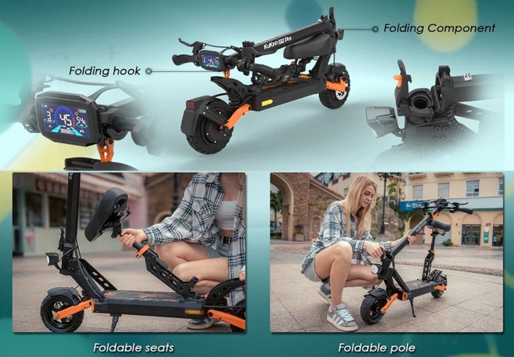 A KuKirin G2 Pro 2026-os verziója hű maradt az elődök masszív felépítéséhez, de a váz szerkezetén és a rögzítési pontokon több finomítást is végeztek a tartósság érdekében. A 9 hüvelykes, bütykös gumiabroncsok nemcsak az aszfalton nyújtanak stabil tapadást, hanem a könnyebb terepen, erdei utakon is magabiztosan mozgatják a járművet.