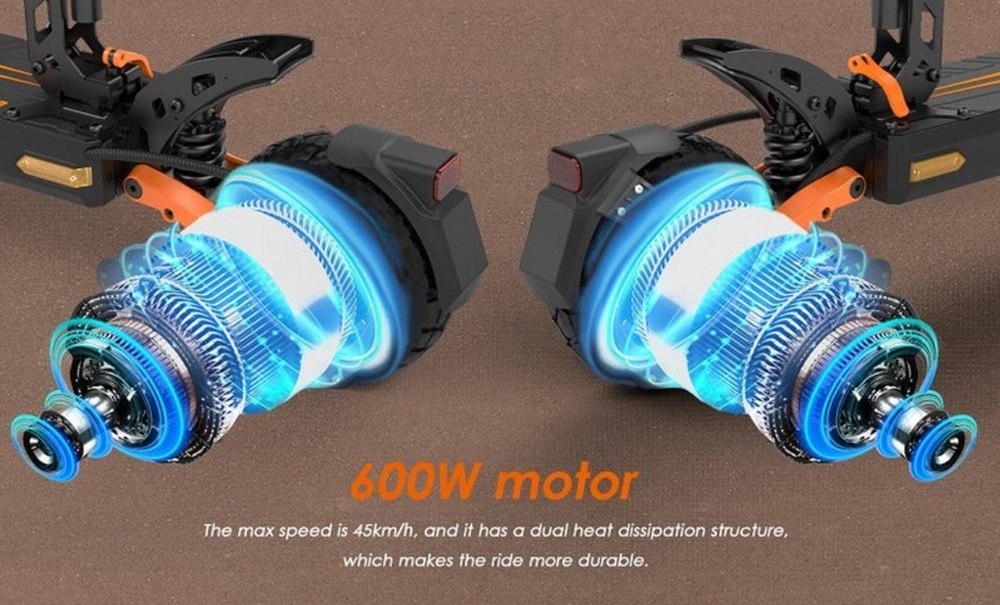 A motorháztető alatt – pontosabban a hátsó kerékben – egy 600 W-os kefementes motor dolgozik, amely bőséges nyomatékot szolgáltat az elinduláshoz és az emelkedők leküzdéséhez. A gyártó által ajánlott végsebesség 25 km/h, ami megfelel a legtöbb szabályozásnak, de a hardver ennél jóval többre képes, így a dinamikus gyorsulás minden sebességtartományban érezhető.