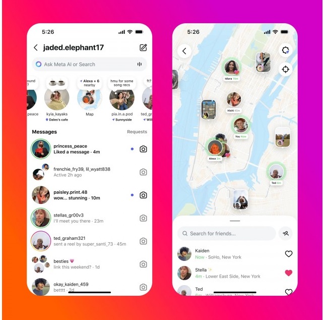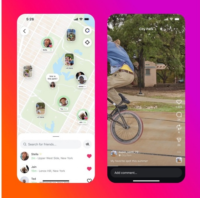 A másik nagy újdonság az „Instagram Map”, egy térkép, amellyel a felhasználók megoszthatják utolsó aktív helyzetüket a kiválasztott ismerőseikkel, de ez természetesen alapértelmezetten ki van kapcsolva. A felhasználók részletesen beállíthatják, hogy kik láthatják ezeket az adatokat, a szülők pedig szabályozhatják ezt gyermekeik esetében.