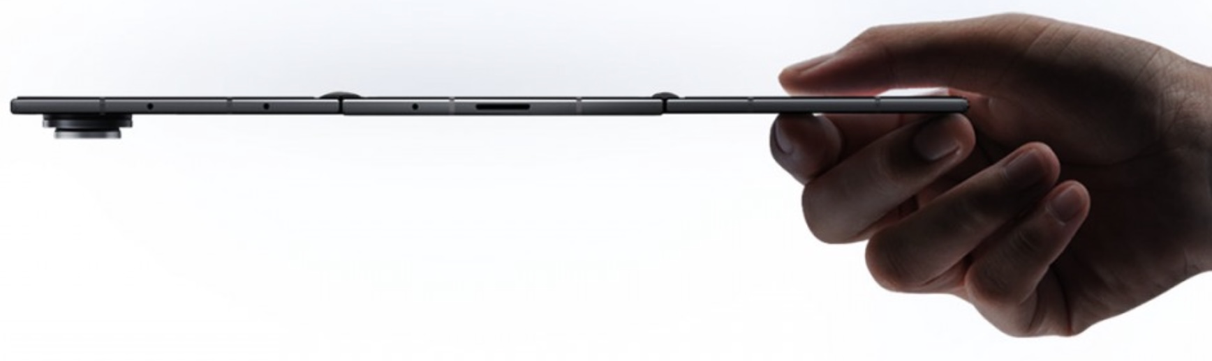 A készülék dupla titán zsanérral rendelkezik, ezek teszik lehetővé, hogy a 10 colos kijelző teljesen befelé záródjon, így összecsukott állapotban védve van. Egy 2160 x 1584 képpont felbontású, 1-120 Hz-es AMOLED megoldásról van szó 1600 nites csúcsfényerővel, és egy apró kameralyuk is található benne egy 10 MP-es szenzorral.