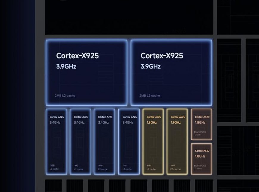 A chipset részét képezi még egy 16 magos ARM Immortalis-G925 grafikus vezérlő és egy 6 magos, 44 TOPS-ra képes neurális feldolgozó egység.