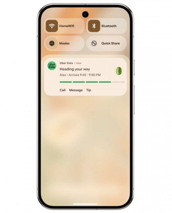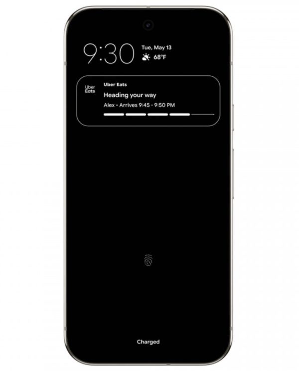 A Live Updates funkció éppen aktuális eseményeket vagy futó appokat mutat az értesítéseknél, ilyen lehet a navigáció vagy az ételrendelés állapota. A nagy újítás, hogy ez most már az Always-on Display (AoD) felületen is megjelenik, így gyakorlatilag kikapcsolt kijelző mellett is követhetjük a fontosabb történéseket.