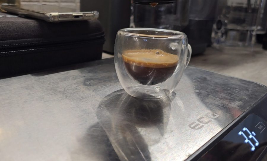 És itt jön a legfontosabb teszteredmény: A szabvány 25 ml ± 2,5 ml-t ír elő. A teszt során megfigyeltük, hogy az automatikus adagolás túl hosszú ideig tartott (37 másodperc), ami túlzott mennyiséghez (33 gramm) vezetett. Azonban a gép manuálisan, 30 másodpercnél leállítható, így a kívánt 25 ml ± 2,5 ml mennyiség és a 25-30 másodperces csapolási idő is pontosan beállítható.