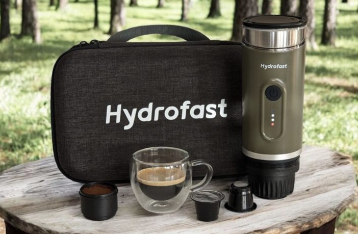 A Hydrofast PO-100 egy hordozható elektromos eszpresszókészítő, amelyet a szabadság jegyében terveztek. Főbb specifikációi közé tartozik a nagy, 9600 mAh-s akkumulátor, a 20 bar maximális nyomást biztosító szivattyú és a rugalmas, 2 az 1-ben kompatibilitás, amely lehetővé teszi az őrölt kávé vagy a Nespresso kapszulák használatát. Ezen tulajdonságok révén a készülék a komolyabb kategóriát képviseli a beépített fűtőelemmel rendelkező hordozható kávégépek között.