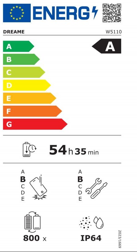 Az EPREL besorolása szerint a készülék energiahatékonyságból „A”, míg leejtés elleni védelem és javíthatóság szempontjából „B” minősítést kapott. Ha minden igaz, az akkumulátor 800 töltési ciklust is kibír majd anélkül, hogy a kapacitása 80 százalék alá csökkenne.