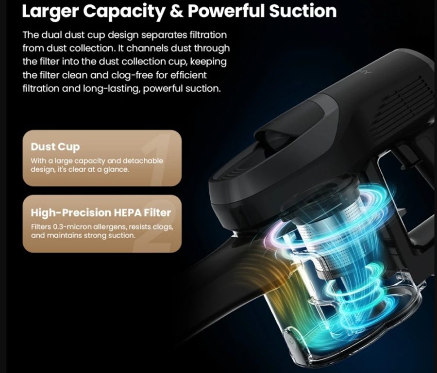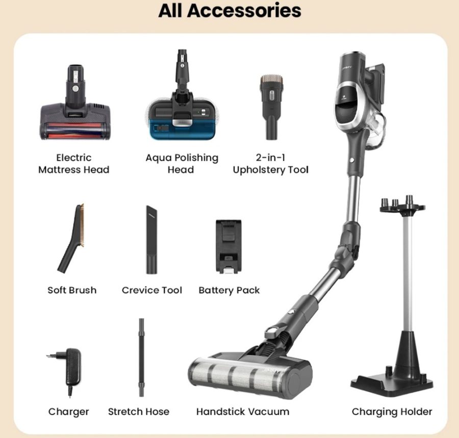 2 az 1-ben kialakítás: Hatékonyan porszívózik és egyben higiénikusan fel is mos. Nincs LED világítás: A porszívófejről hiányzik a világítás, ami megnehezíti a sötét helyeken való takarítást.
