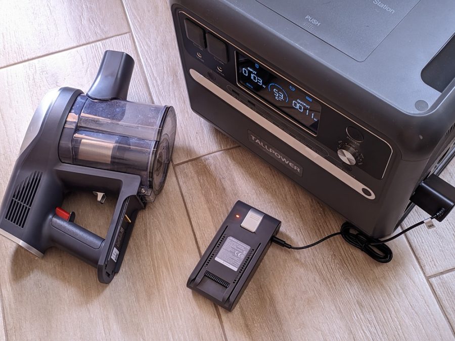 A gyártó szerint egy feltöltéssel akár 65 percig is bírja, de ez természetesen a legalacsonyabb (ECO) fokozaton, motorizált fej nélkül értendő. Reálisabb, ha vegyes használat (porszívózás és felmosás) mellett 30-40 perces üzemidővel számolunk, ami egy átlagos, 60-80 négyzetméteres lakás kitakarítására bőven elegendő. A teljes feltöltés nagyjából 4-5 órát vesz igénybe.