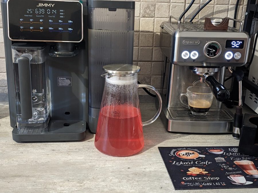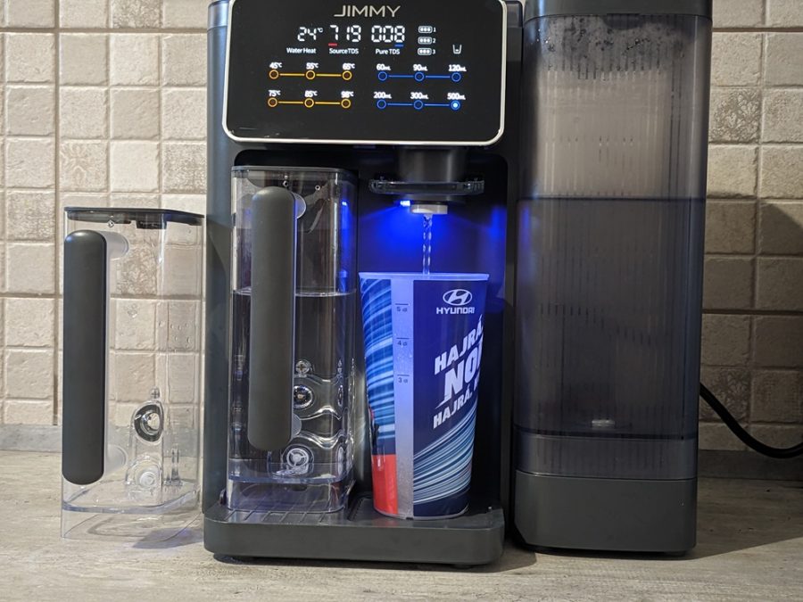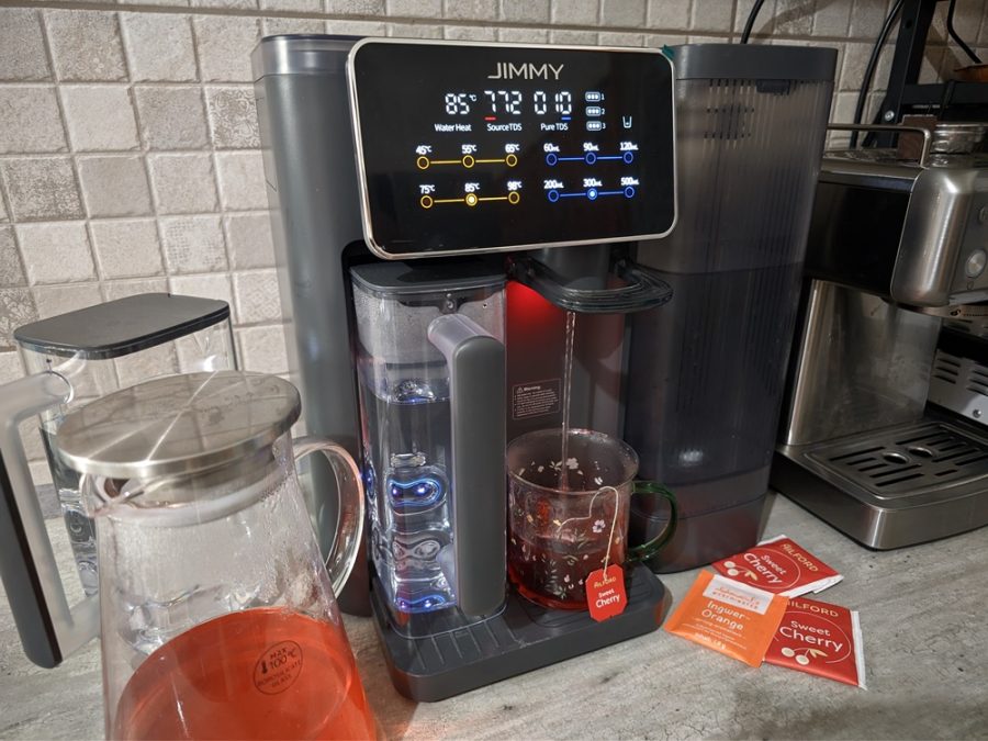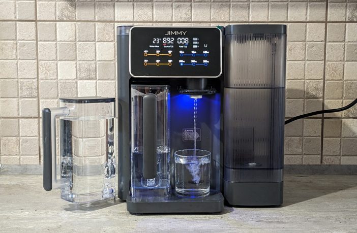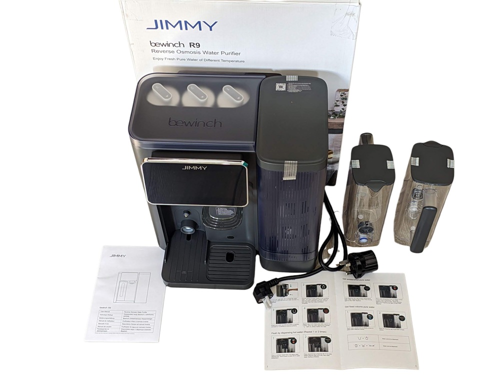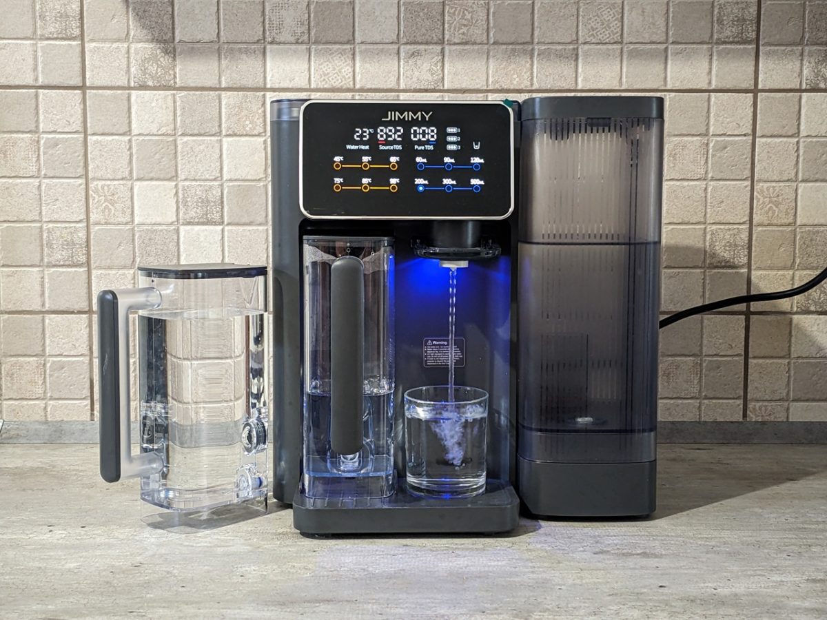 A Jimmy R9 egy pultra helyezhető, telepítést nem igénylő víztisztító, melynek hétlépcsős, fordított ozmózisos (RO) szűrési technológiája 99,99%-os hatékonysággal távolítja el a káros anyagokat, például a nehézfémeket, a klórt, a baktériumokat és a vírusokat. A készülék nemcsak tisztít, hanem azonnal képes a vizet különböző hőmérsékleteken adagolni, így kiváltva a vízforralót is. Az UV-sterilizálásnak, az ásványi anyagokat adagoló aktív szűrőknek és a beépített TDS-mérőnek köszönhetően az R9 garantálja a legmagasabb minőségű ivóvizet. Tesztünk során a készülék a szennyezett vízből is kristálytiszta ivóvizet állított elő, amelynek ízét a kókuszhéj aktívszén-patronja természetes ásványi anyagokkal javítja, ellentétben a teljesen szűrt vizekkel. Ez a készülék nemcsak a konyhában, hanem irodában, edzőteremben vagy akár lakókocsiban is megállja a helyét.