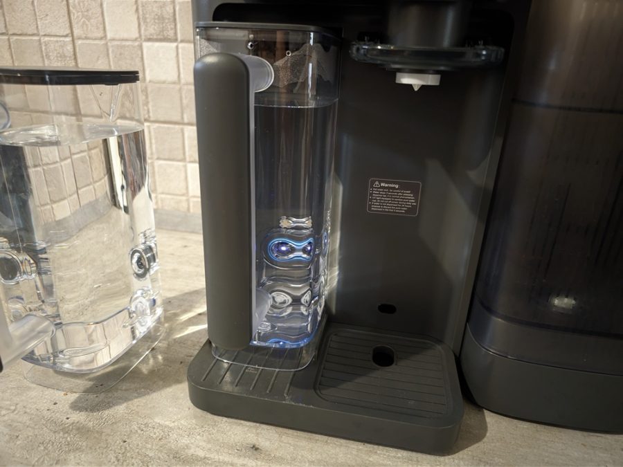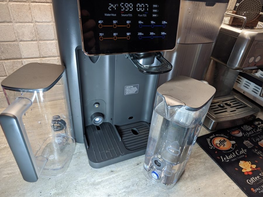 Ez a megoldás nem ideális bérlőknek, vagy azoknak, akik nem szeretnének változtatásokat eszközölni otthonukon. Az R9 viszont leegyszerűsíti a folyamatot egy „plug-and-play” élménnyé, ami a készüléket egy rugalmas háztartási eszközzé emeli. A hordozhatóságának köszönhetően ráadásul szükség esetén az irodába vagy a nappaliba is átvihető, ha épp ott van rá szükség. Ha elfogy a víz a tartályból, nincs más dolgunk, mint a két mellékelt kancsó közül a kivehető nyersvíz-tartályba beleönteni, ami oldalról is hozzáférhető, vagy ha teljesen kifogyott, kivenni a tartályt, és feltölteni.