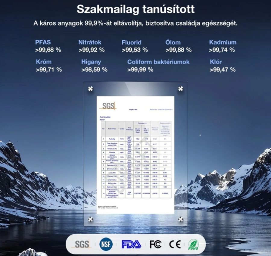 Ez a funkció nem csupán egy technikai extra, hanem egy erős bizalomépítő eszköz. Ahelyett, hogy vakon kellene bízni a gyártó tisztaságra vonatkozó ígéreteiben, a felhasználó azonnali, vizuális bizonyítékot kap arra, hogy a készülék valóban hatékonyan működik. A víztisztító minőségét és biztonságát olyan nemzetközi tanúsítványok igazolják, mint az SGS, az ITS és az NSF/ANSI.