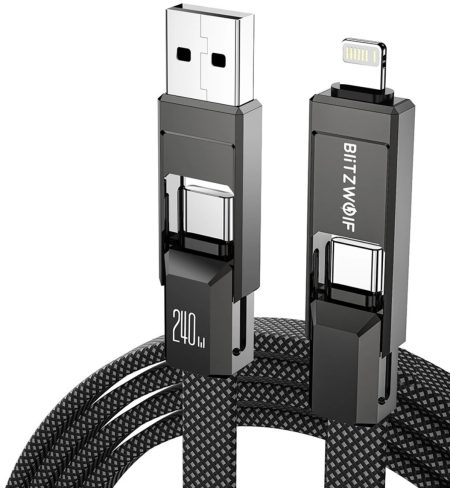 BlitzWolf BW HDC7 villámgyors USB-C kábel 240W-os töltés támogatással most csak 8.99$ a BGc26091 kuponnal (~2900 Ft). Átalakítható normál USB-re és Lightning-ra!